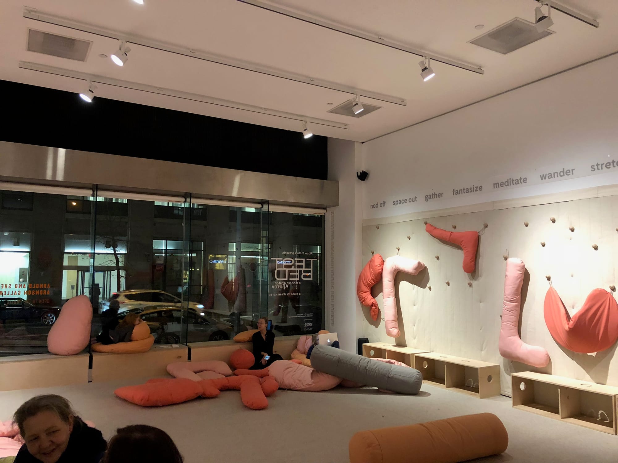 The last time I saw Natalie was March 2018 in NYC. I was in town for a very geeky technical meeting hosted by HOK and found it the perfect opportunity to seek her out and catch up, if briefly. She was (and still is!) working as an art, interiors, and architecture professor at Parsons, while also engaged in a side gig... Pillow Culture. Her first Pillow Culture exhibit, "Test Bed", had recently opened at the Parson's gallery and she had an afternoon/early evening to spare.